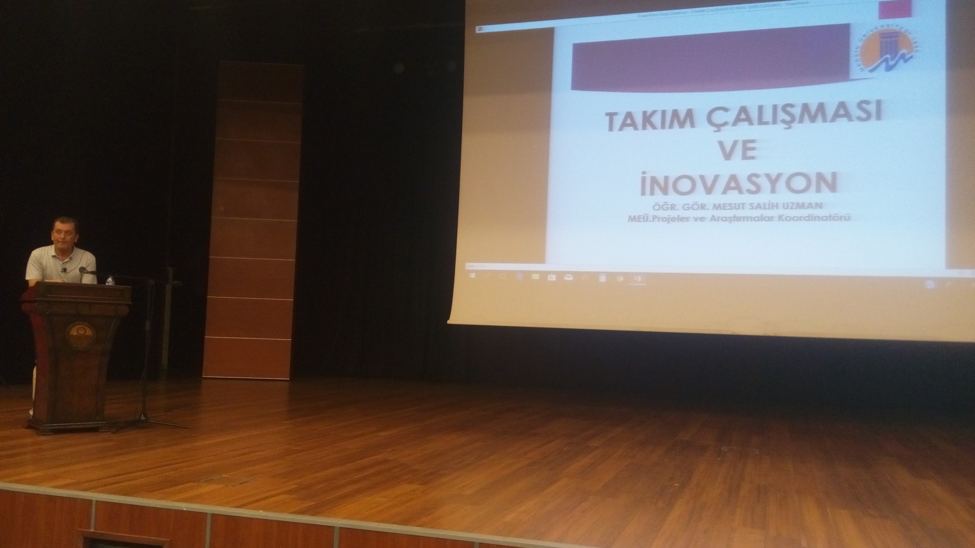 Merkezimiz ile Mersin Büyükşehir Belediyesi arasında yapılan protokol kapsamında eğitimlerimiz devam ediyor.Üniversitemiz Öğretim Elemanlarından Öğretim Görevlisi Mesut Salih UZMAN tarafından belediye çalışanlarına yönelik "Takım Çalışması ve İnovasyon" semineri verildi.