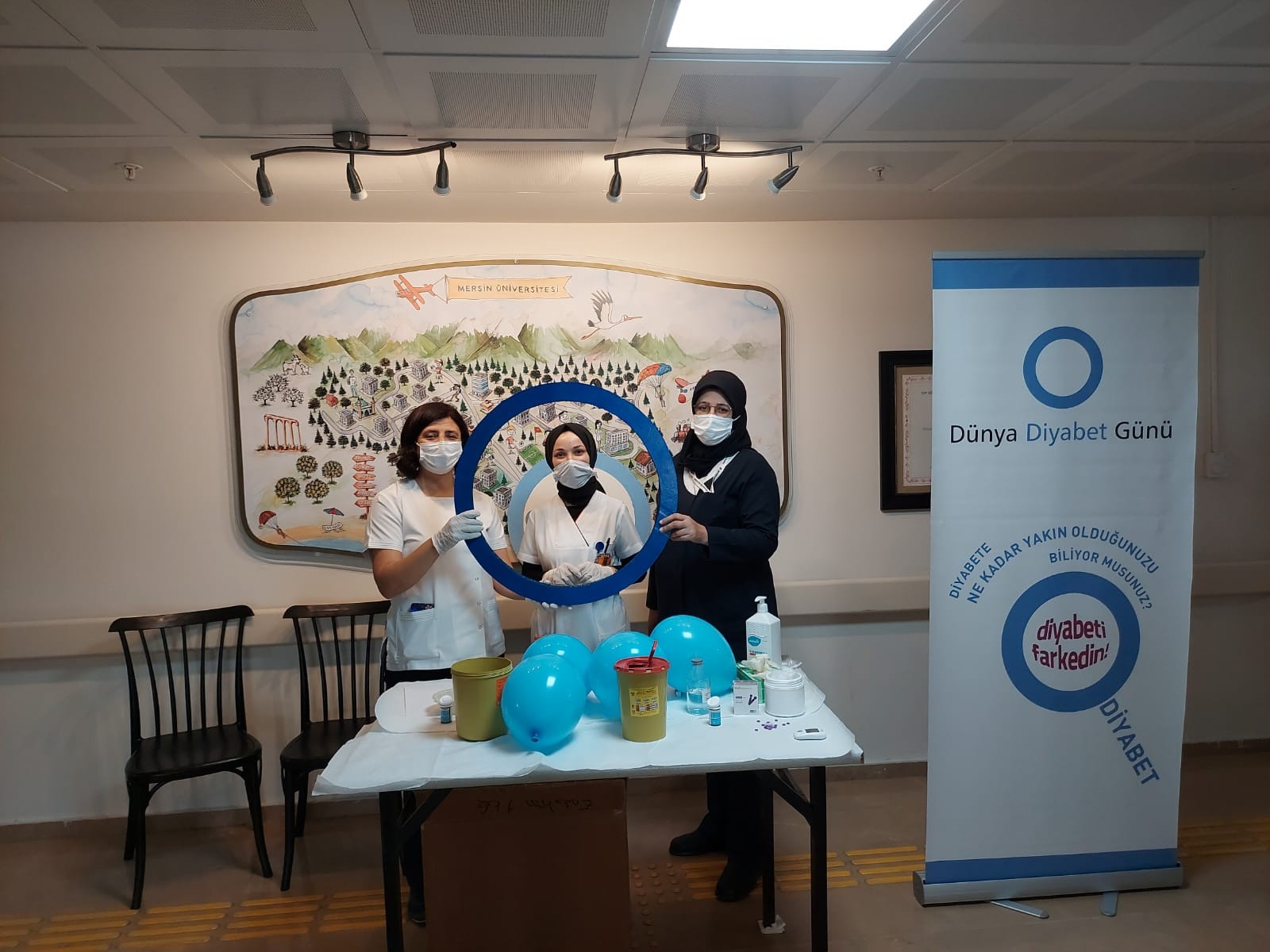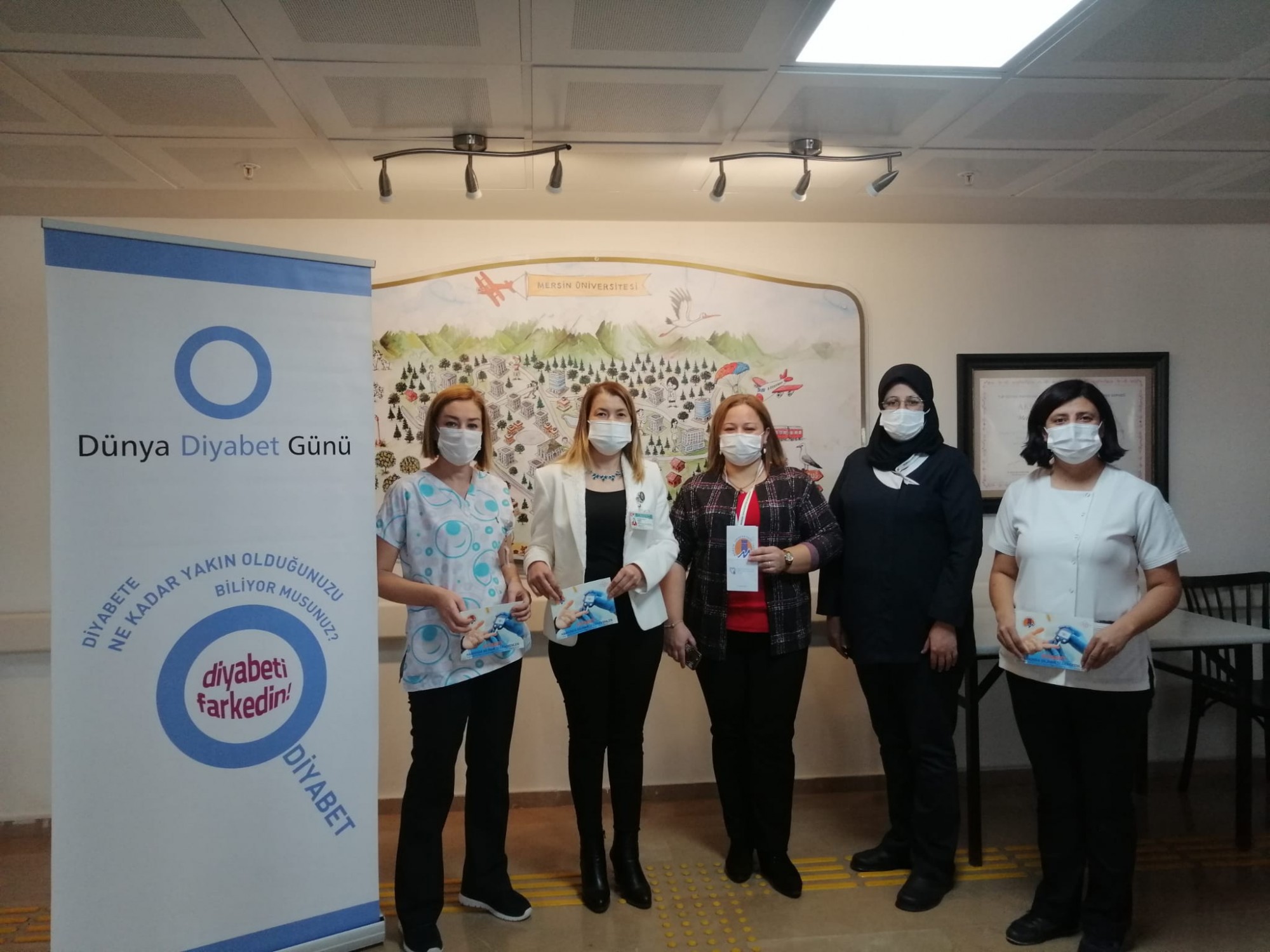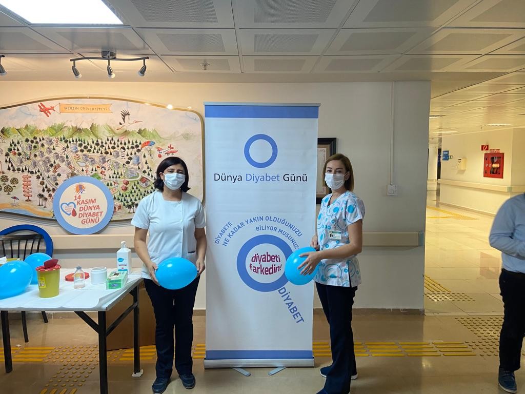 14 Kasım Dünya Diyabet Günü kapsamında farkındalık yaratmak amacı ile Diyabet Hemşiresi Eylem TÜRK, Dâhiliye-3 Servis Sorumlu Hemşiresi Ganime DEMİR ve Eğitim Hemşiresi Uzman Hemşire Arzu ÖZEL tarafından 15 Kasım 2021 tarihinde hastanemiz poliklinik girişinde, hasta ve hasta yakınlarına parmak ucu kan şekeri ölçümü yapılarak bilgi verilmiş ve hazırlanan “Diyabet Hakkında Bilgilendirme” broşürü dağıtılmıştır.