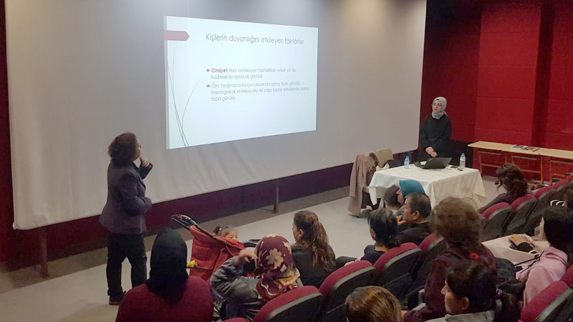 Bu kapsamda 3-17 Nisan 2023 tarihleri arasında; Prof. Dr. Gülçin Yapıcı, Prof. Dr. C. Tayyar Şaşmaz, Arş. Gör. Dr. İren Altınören Evgin, Arş. Gör. Dr. Burcu Ecem Uğuz, Arş. Gör. Dr. Deniz Erdal, Arş. Gör. Dr. Yahya Bolat, Arş. Gör. Dr. Meryem Şerif Ekinci, Arş. Gör. Dr. Duygu Onbaşı, Arş. Gör. Dr. Şahadet Kurnaz ve Arş. Gör. Dr. Altuğ Civan tarafından vatandaşlarımıza anne ve çocuk sağlığı, anne sütü ve emzirme, hijyen ve sanitasyon, temel sağlık davranışları, bulaşıcı hastalıklar ve bulaşıcı olmayan hastalıklardan korunma, çocuk ve erişkinlerde aşılama, toplum beslenmesi, bebek ve çocuklarda beslenme, cinsel sağlık ve aile planlaması konularında haftada iki gün sağlık eğitimi verilmeye başlandı.