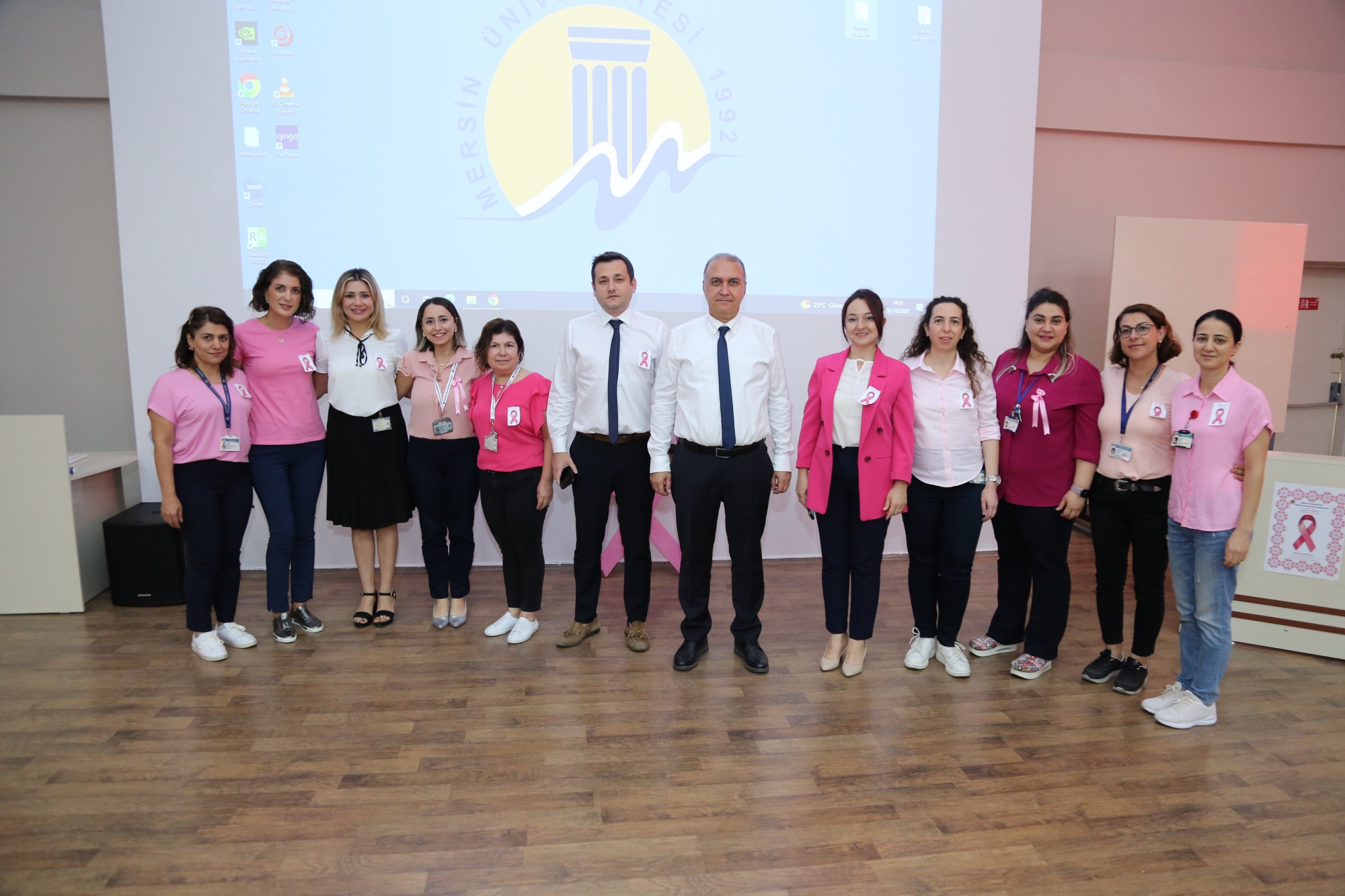 Etkinlikler kapsamında; Üniversite Hastanemiz ve Onkoloji Hastanemizin girişlerine stantlar kurularak, bilgilendirme afişleri asılmıştır. Bu stantlarda görevli sağlık çalışanlarımız, hasta ve hasta yakınlarının meme kanseri konusunda bilinçlenmeleri için bilgiler vererek, günün anlam ve önemini belirten broşürler dağıtmıştır. Bunun yanında kurdeleler takdim edilmiştir.