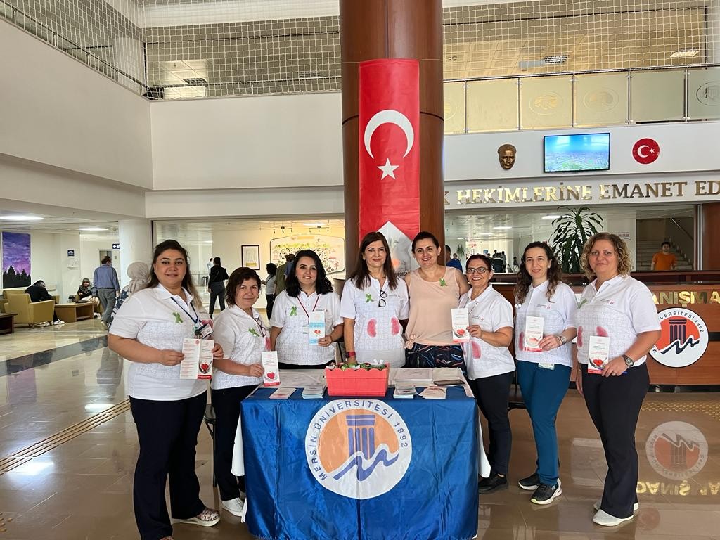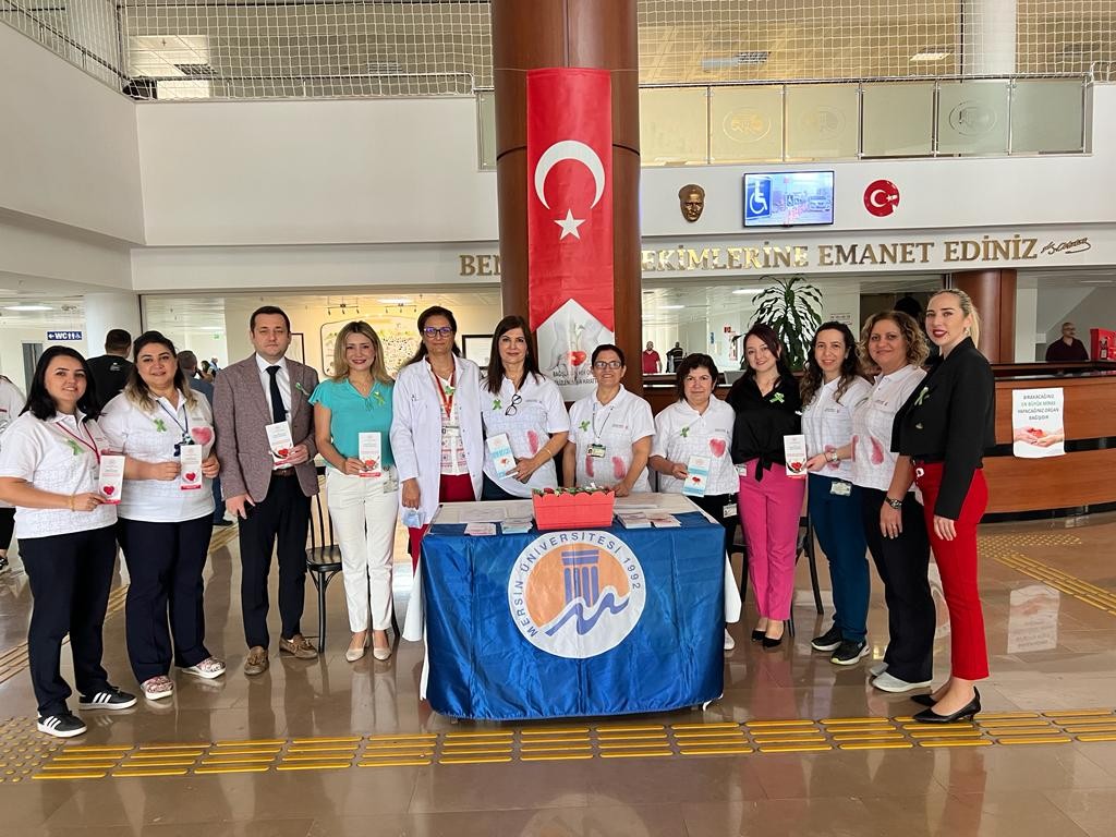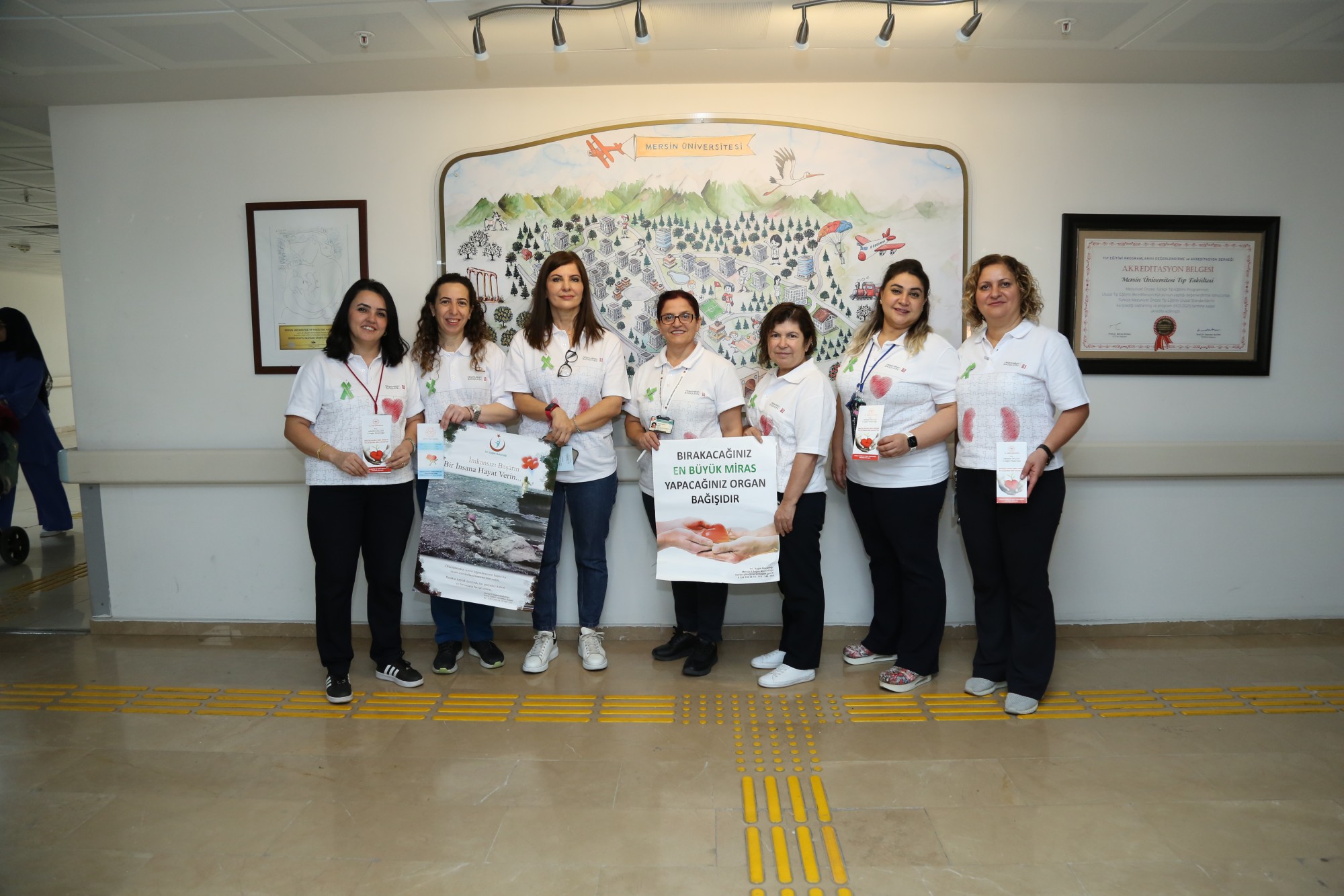 Etkinlikler kapsamında 03-09 Kasım 2023 tarihleri arasında Mersin Üniversitesi Hastanesi Organ ve Doku Nakli Merkezi Koordinatörlerinden Dr. Çilem YILDIZ, Hemşire Zübeyde USANMAZ ve Mersin Üniversitesi Hastanesi Hemşirelik Hizmetleri Koordinatörlüğü iş birliğiyle hastane çalışanlarımıza ve vatandaşlarımıza organ bağışı ve önemi hakkında bilgi verilmiş, organ bağışına teşvik edilmiştir.