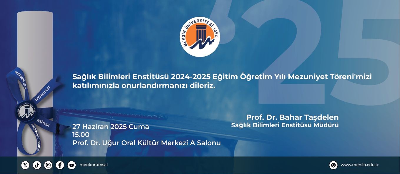 Enstitümüz tarafından 27 Haziran 2025 tarihinde Mezuniyet töreni gerçekleştirilecektir.