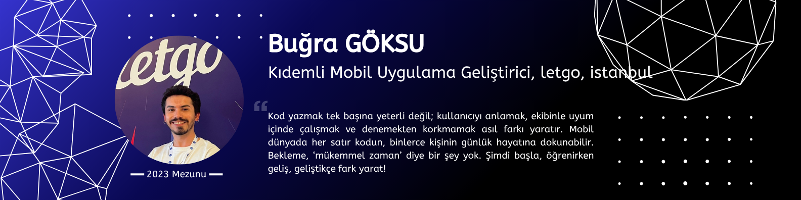 "Algoritmalardan Hayallere: Kendi Mühendislik Hikayeni Yazmaya Bu Seslerle Başla" serimizde, mezunlarımızdan gelen yol gösterici ve ilham verici mesajlara yer veriyoruz. Yeni öğrencilerimize yol göstermesi dileğiyle.