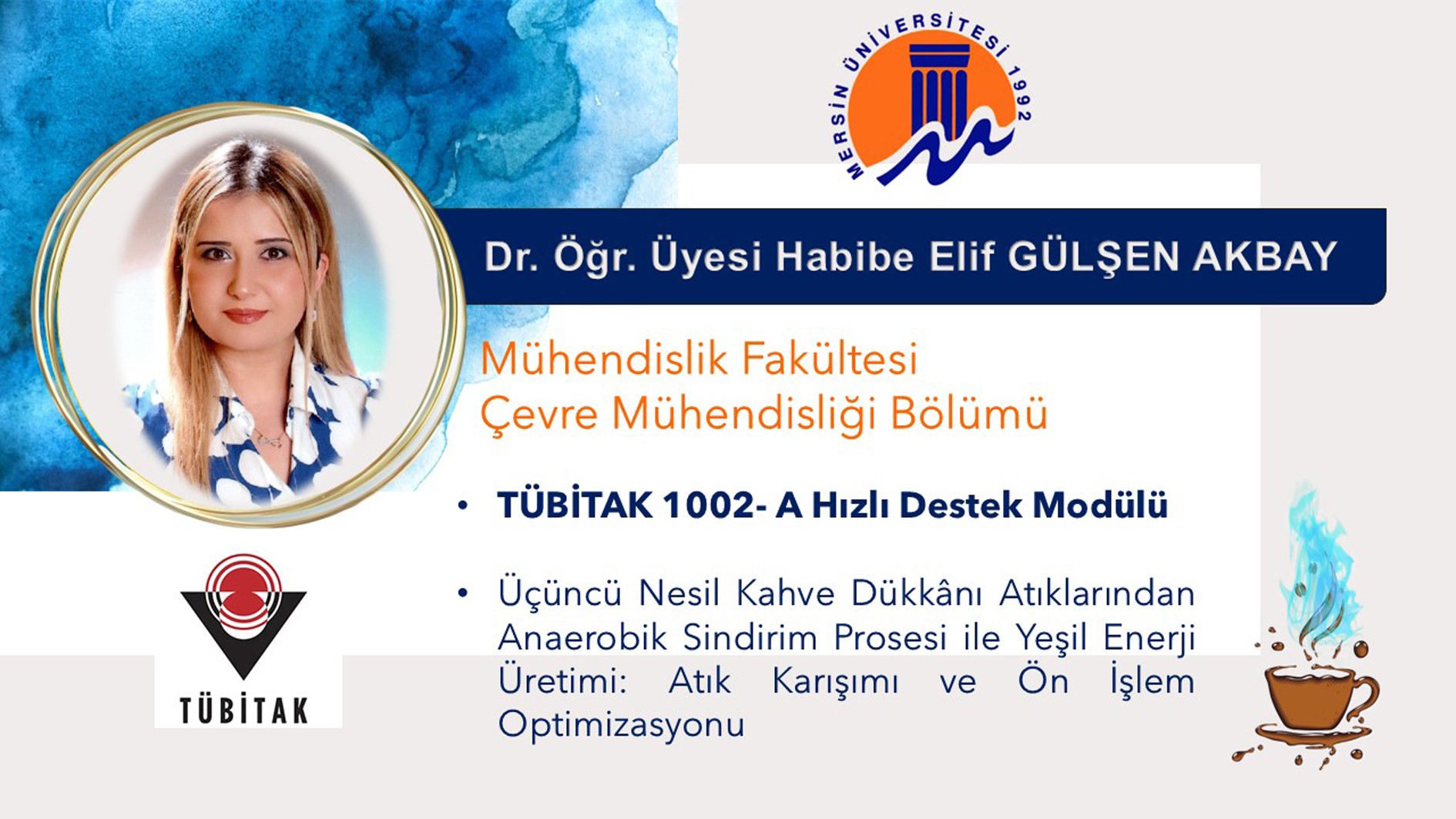 Üniversitemiz Mühendislik Fakültesi Çevre Mühendisliği Bölümü öğretim üyesi Dr. Habibe Elif Gülşen Akbay’ın yürütücüsü olduğu “Üçüncü Nesil Kahve Dükkânı Atıklarından Anaerobik Sindirim Prosesi ile Yeşil Enerji Üretimi: Atık Karışımı ve Ön İşlem Optimizasyonu” başlıklı proje, TÜBİTAK ARDEB 1002-A kapsamında desteklenmeye hak kazandı.