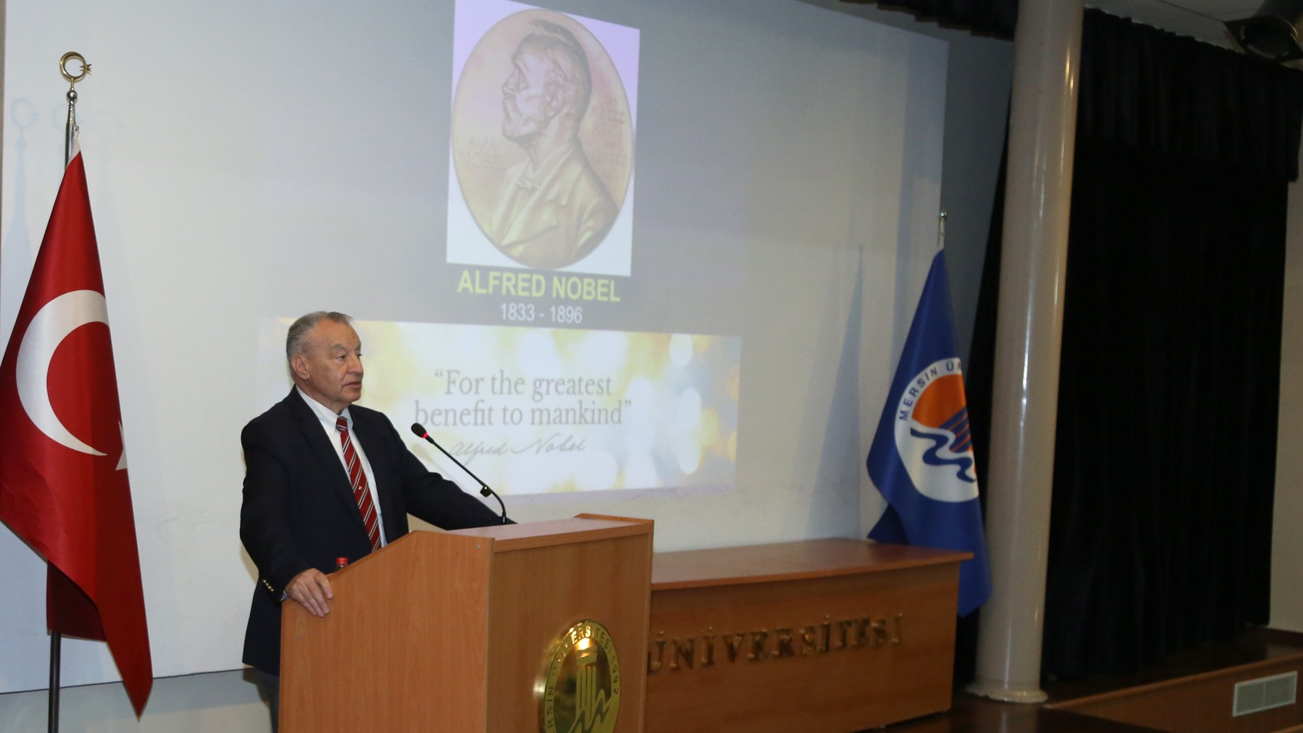 Prof. Dr. Emin Kansu, 1901’den günümüze kadar Nobel Ödülü kazanan bilim insanlarının ilham verici hikayelerini, çalışma disiplinlerini, süreçleri anlattığı konferansta bu ödülü kazanan Türk bilim insanı Aziz Sancar’dan da bahsetti. Prof. Dr. Kansu, Prof. Dr. Sancar’ın Nobel başarısının bilim dünyası için çok önemli olduğunu, ülkemiz için de büyük bir gurur kaynağı olduğunu söyledi.