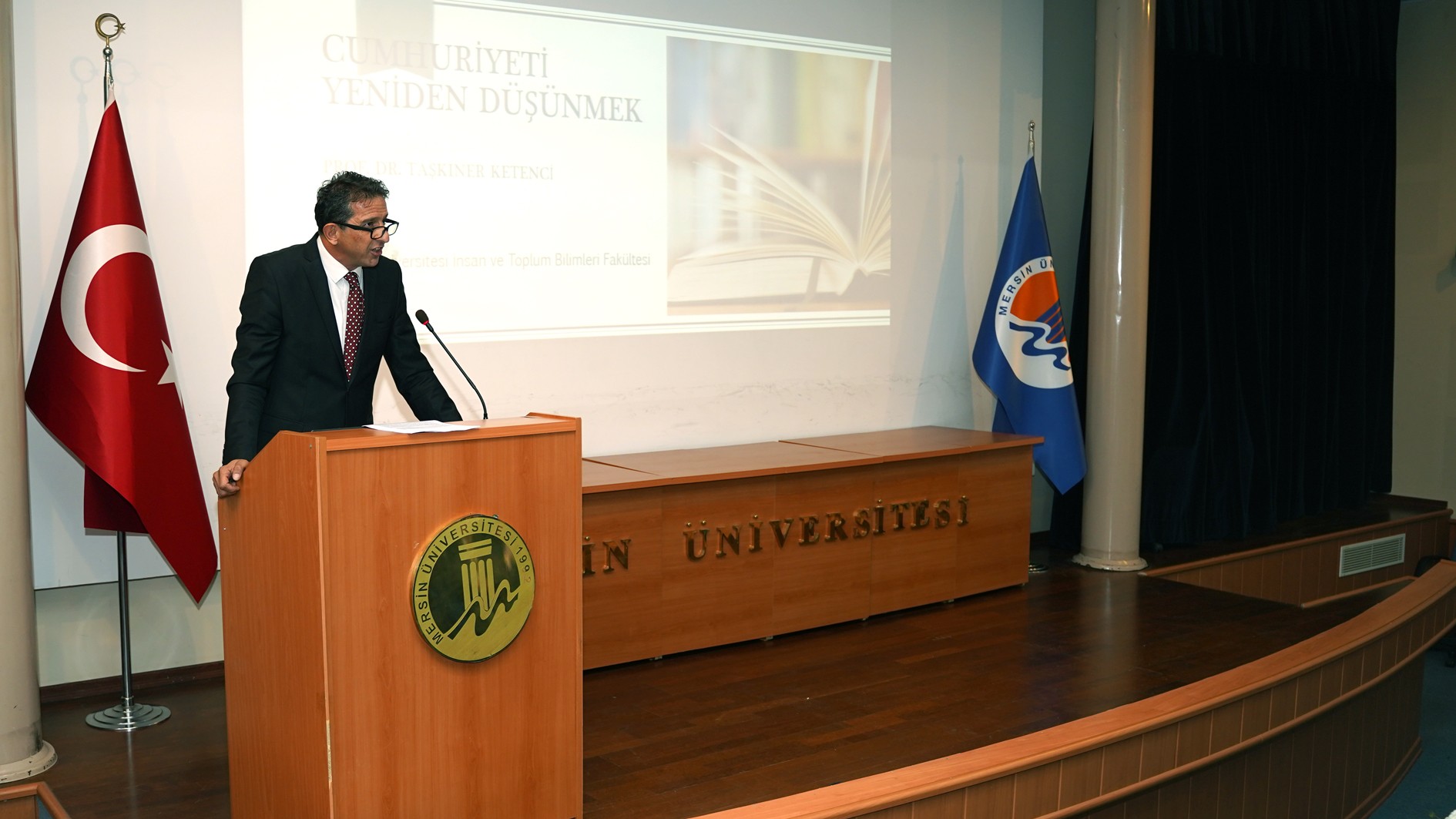 Prof. Dr. Taşkıner Ketenci konuşmasını 29 Ekim tarihinin yalnızca bir tarihî olayın yıldönümünü değil, bir düşünce biçiminin, bir toplumsal tahayyülün ve bir etik sorumluluğun yeniden hatırlanmasının kutlandığını, cumhuriyetin yalnızca bir yönetim biçimi değil bir zihniyet devrimi olduğunu söyledi.