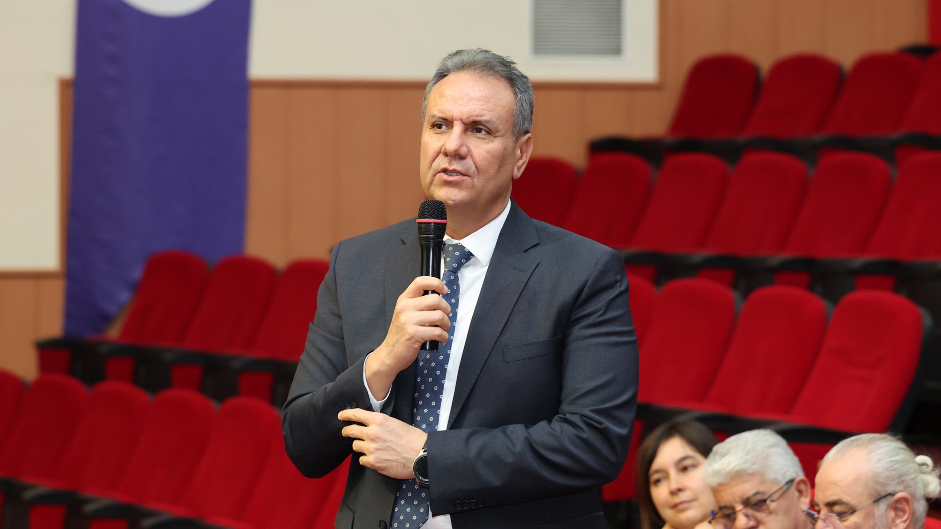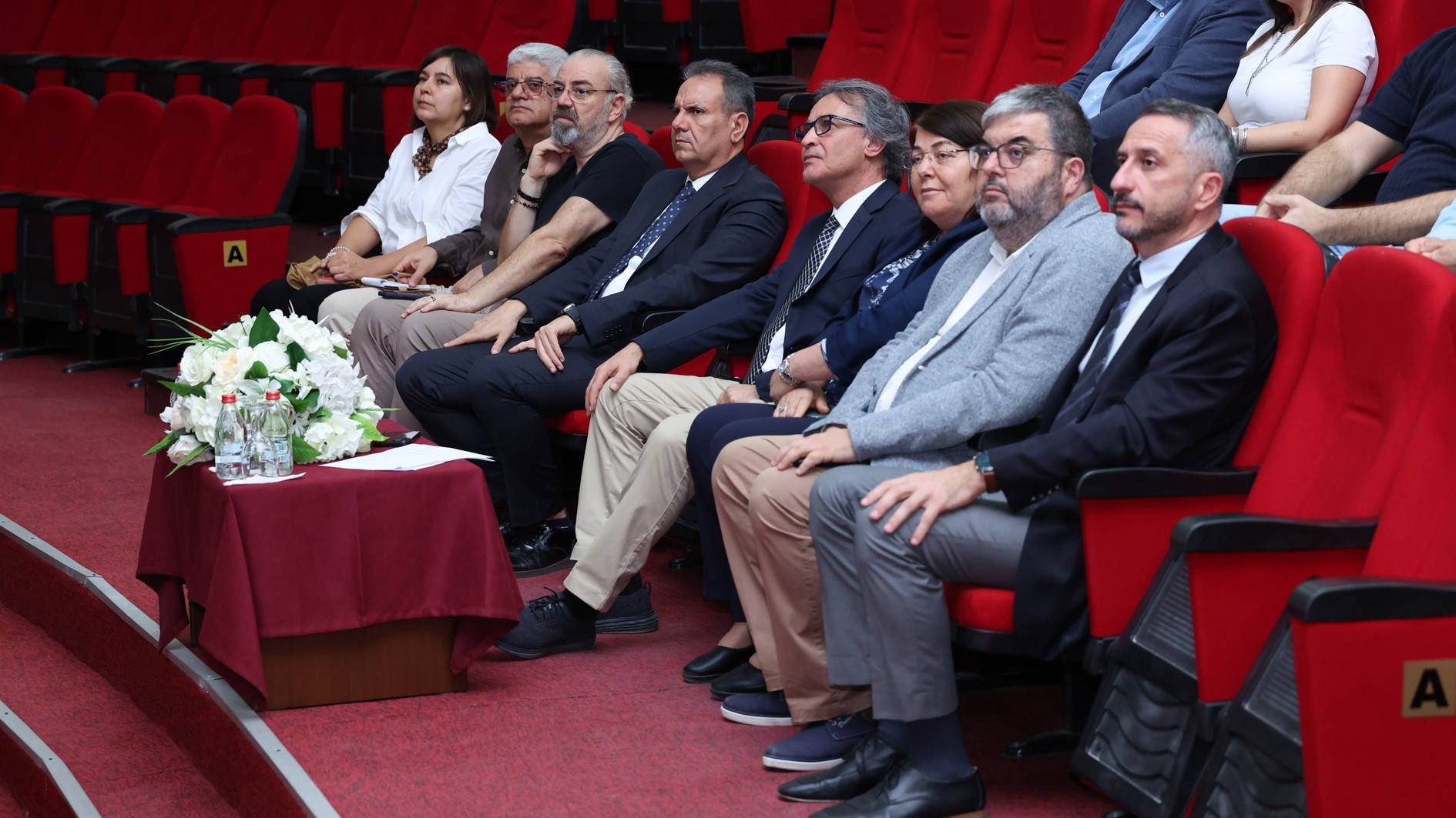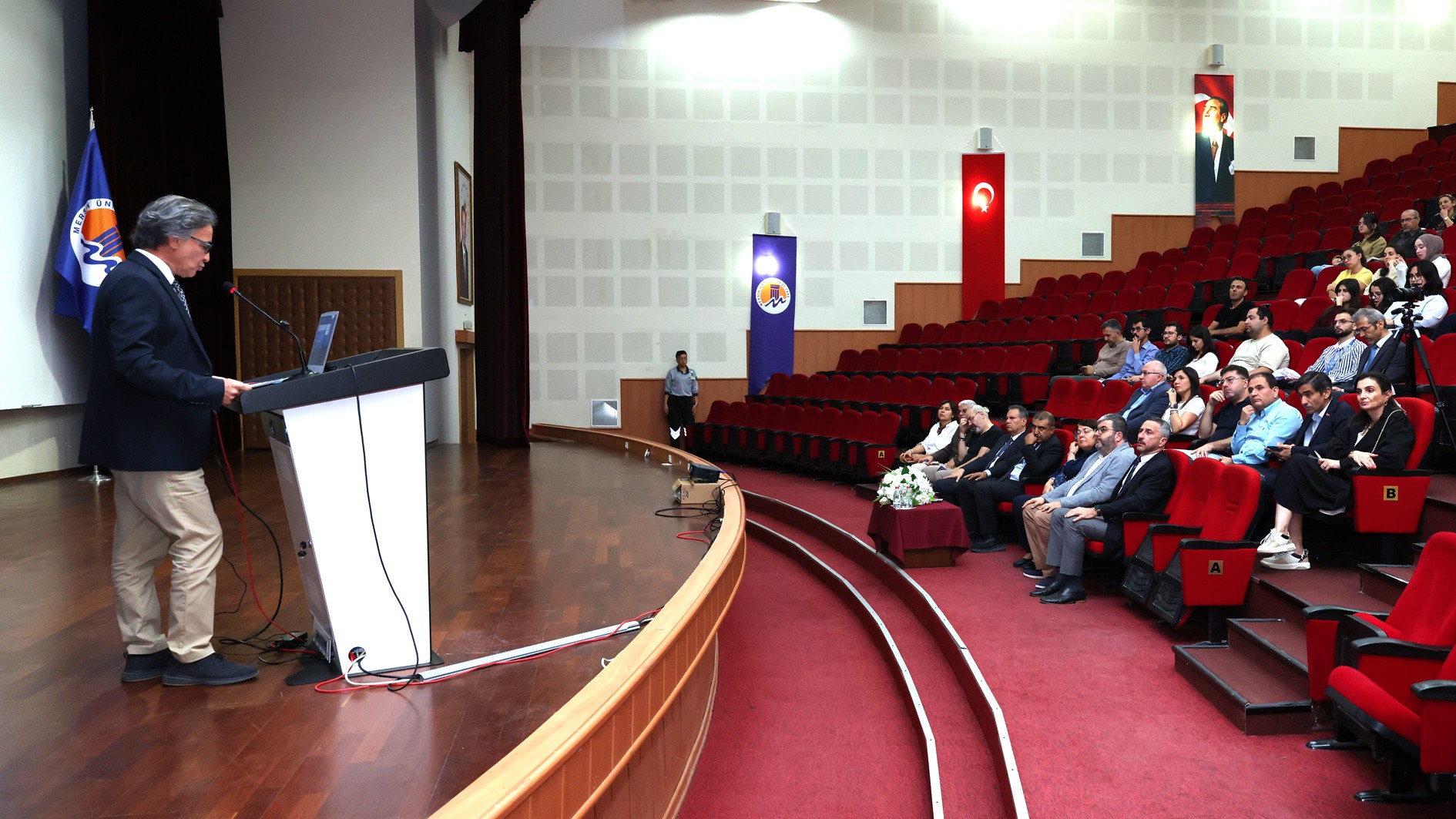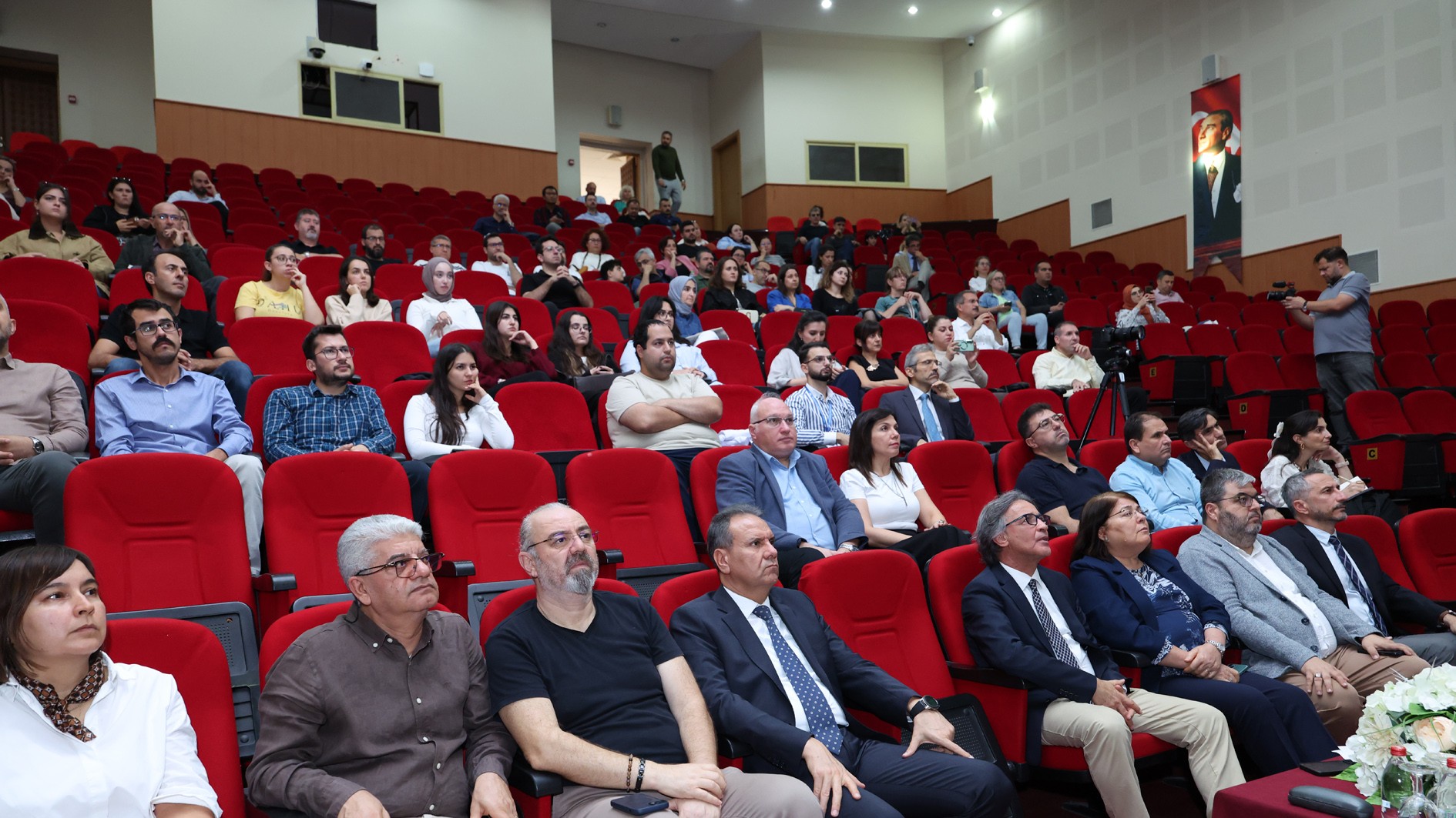 Ziyaretin ardından Üniversitemiz Prof. Dr. Uğur Oral Kültür Merkezi A Salonunda düzenlenen konferansa geçildi. Konferansa, Rektör Yardımcısı Prof. Dr. Ahmet Hakan Öztürk, Rektör Danışmanları Prof. Dr. Ayla Özer ve Prof. Dr. Fatih İlker Kara, dekanlarımız, müdürlerimiz, TÜBİTAK ARDEB Başkan Yardımcısı Doç. Dr. Cengiz Arıcı ile akademik ve idari personel ve öğrenciler katıldı.