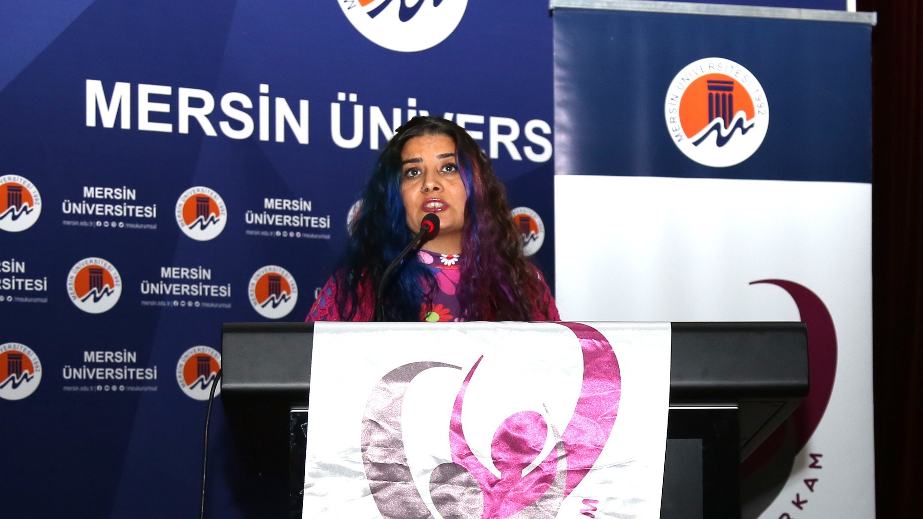Açış konuşmasını yapan MERKAM Müdürü Doç. Dr. Aysun Yaralı Akkaya, kadına yönelik şiddetin yalnızca Türkiye’nin değil, tüm dünyanın sorunu olduğunu vurguladı. Bu yıl Birleşmiş Milletler’in teması olan “Kadınlar ve kız çocuklarına karşı siber şiddete son” konusuna değinen Doç. Dr. Yaralı Akkaya, klasik şiddet tanımlarına psikolojik, fiziksel, ekonomik ve cinsel şiddetin yanı sıra siber şiddetin de eklendiğini ifade ederek, kadına yönelik şiddete karşı dayanışma çağrısında bulundu.