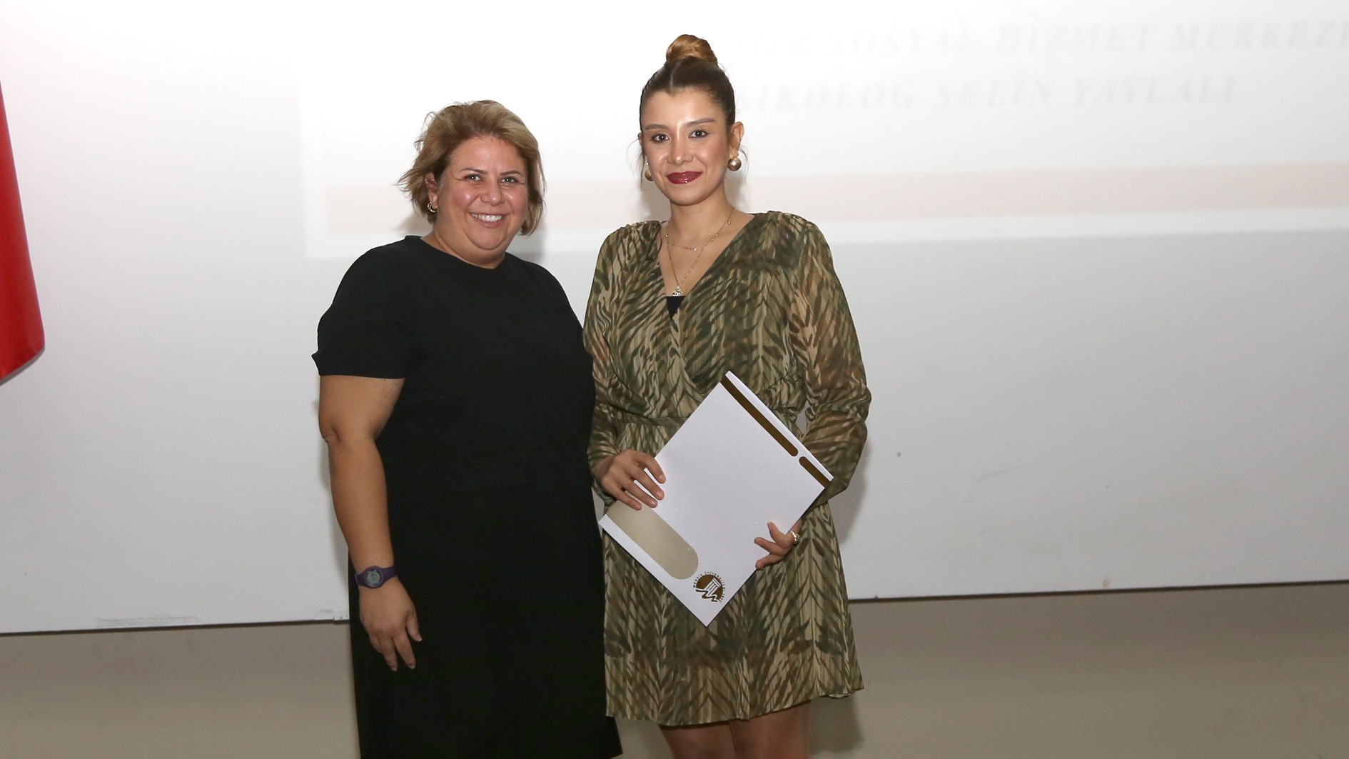 Psikolog Selin Yaylalı, Aile ve Sosyal Hizmetler Bakanlığı tarafından kurulan Alo 183 Şiddetle Mücadele Hattı’nın 7/24 ücretsiz hizmet verdiğini ve her çağrının gizlilik esasına göre değerlendirildiğini belirtti. Ayrıca Kadın Destek Uygulaması (KADES) ile ilgili bilgilendirme ve tanıtım videosu sunuldu.