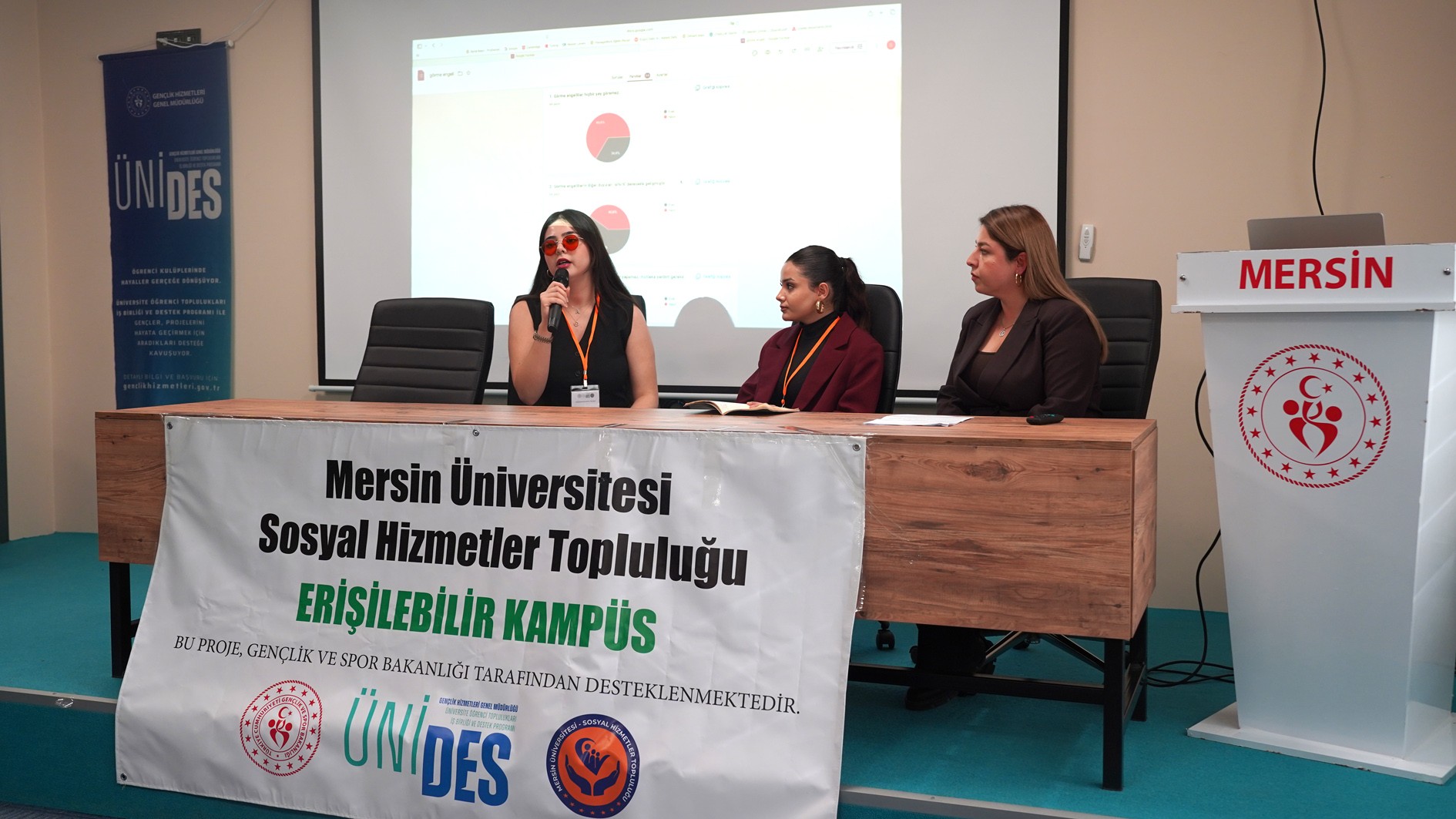 Üniversitemiz Sosyal Hizmetler Topluluğu tarafından, 3 Aralık Dünya Engelliler Günü kapsamında hazırlanan “Erişilebilir Kampüs” projesi hayata geçirildi. Gençlik ve Spor Bakanlığı Gençlik Hizmetleri Genel Müdürlüğü tarafından Üniversite Öğrenci Toplulukları İş Birliği ve Destek Programı (ÜNİDES) kapsamında destek almaya hak kazanan proje, 5 Aralık 2025 tarihinde Mezitli Engelsiz Gençlik Merkezi konferans salonunda gerçekleştirildi.