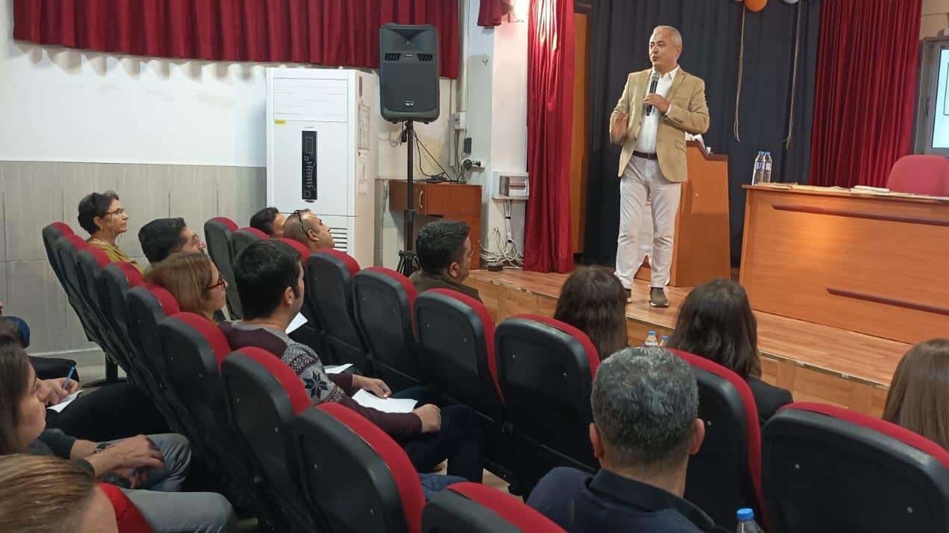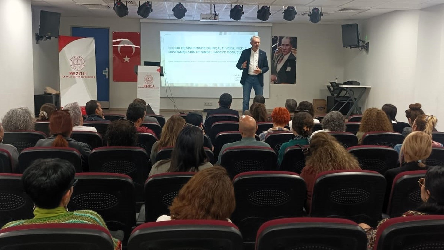 3 Aralık Çarşamba günü Prof. Dr. Emrah Uysal tarafından gerçekleştirilen “Çocuğun Sanatsal Gelişimi” konulu söyleşi, Şehit Özkan Demir Ortaokulu Konferans Salonu’nda, Mezitli İlçe Millî Eğitim Şube Müdürü Çetin Çınğı ile Mezitli İlçe Millî Eğitim Müdürlüğüne bağlı okullarda görev yapan görsel sanatlar öğretmenleri ve rehber öğretmenlerin katılımıyla gerçekleştirildi.