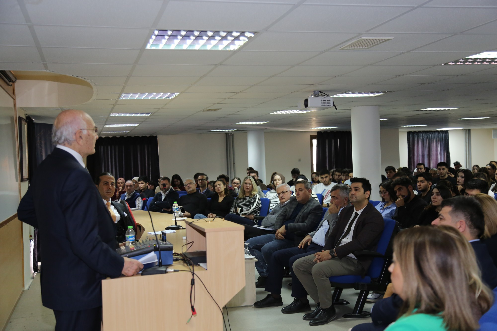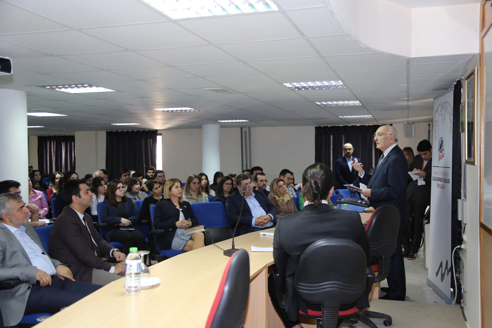Dr. Öğr. Üyesi Yakup Şahin’in moderatörlüğünde gerçekleşen konferansa; İktisadi ve İdari Bilimler Fakültesi Dekanı Prof. Dr. Cemal Altan, Uluslararası İlişkiler Bölümü öğretim üyesi Doç. Dr. Azime Telli, İktisadi ve İdari Bilimler Fakültesi Kamu Yönetimi Bölümü öğretim üyesi Prof. Dr. Hacı Kurt ile akademisyenler ve fakülte öğrencileri katıldı.