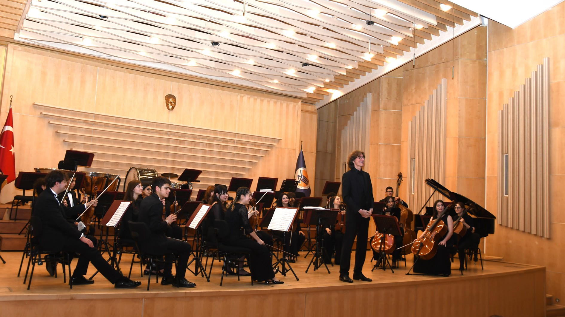 Üniversitemiz Müzik ve Sahne Sanatları Fakültesi bünyesinde 1998 yılında kurulan ve çalışmalarını Devlet Konservatuvarı öğretim elemanı Selahattin Yunkuş ile sürdüren Gençlik Senfoni Orkestrası, 23 Aralık Pazartesi günü Nevit Kodallı Uygulama ve Araştırma Merkezi’nde özel bir konser etkinliği gerçekleştirdi.