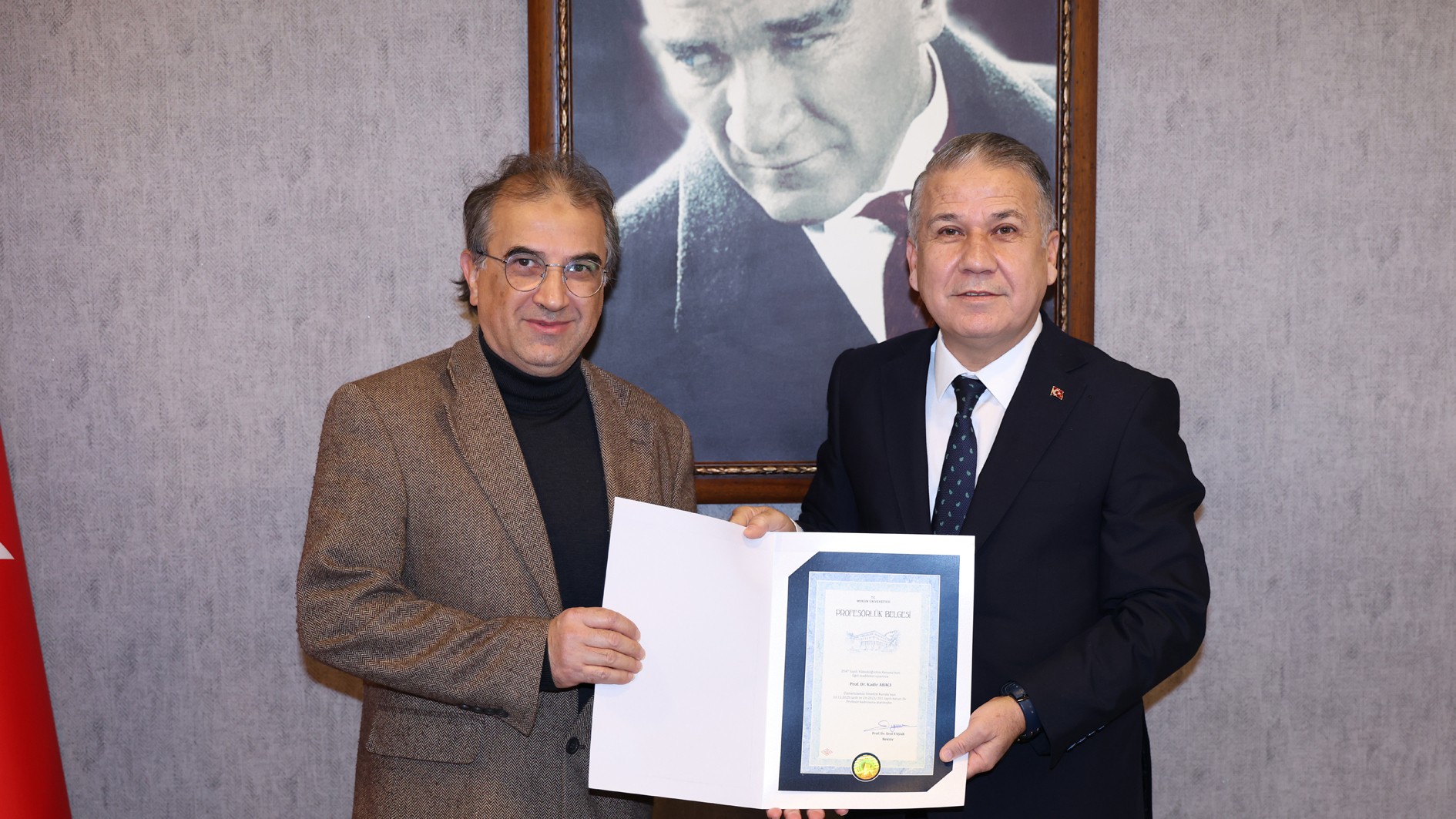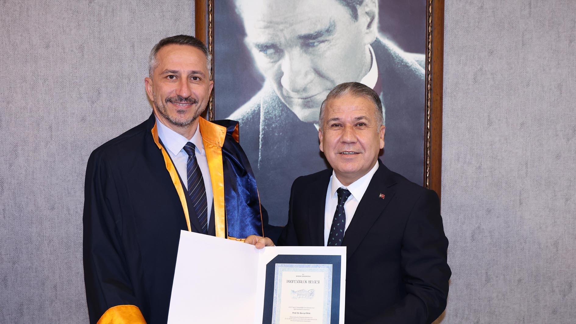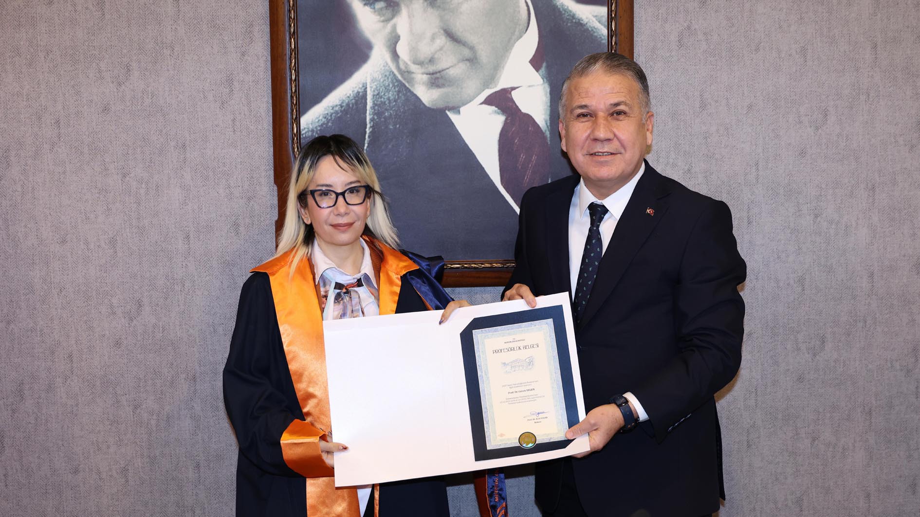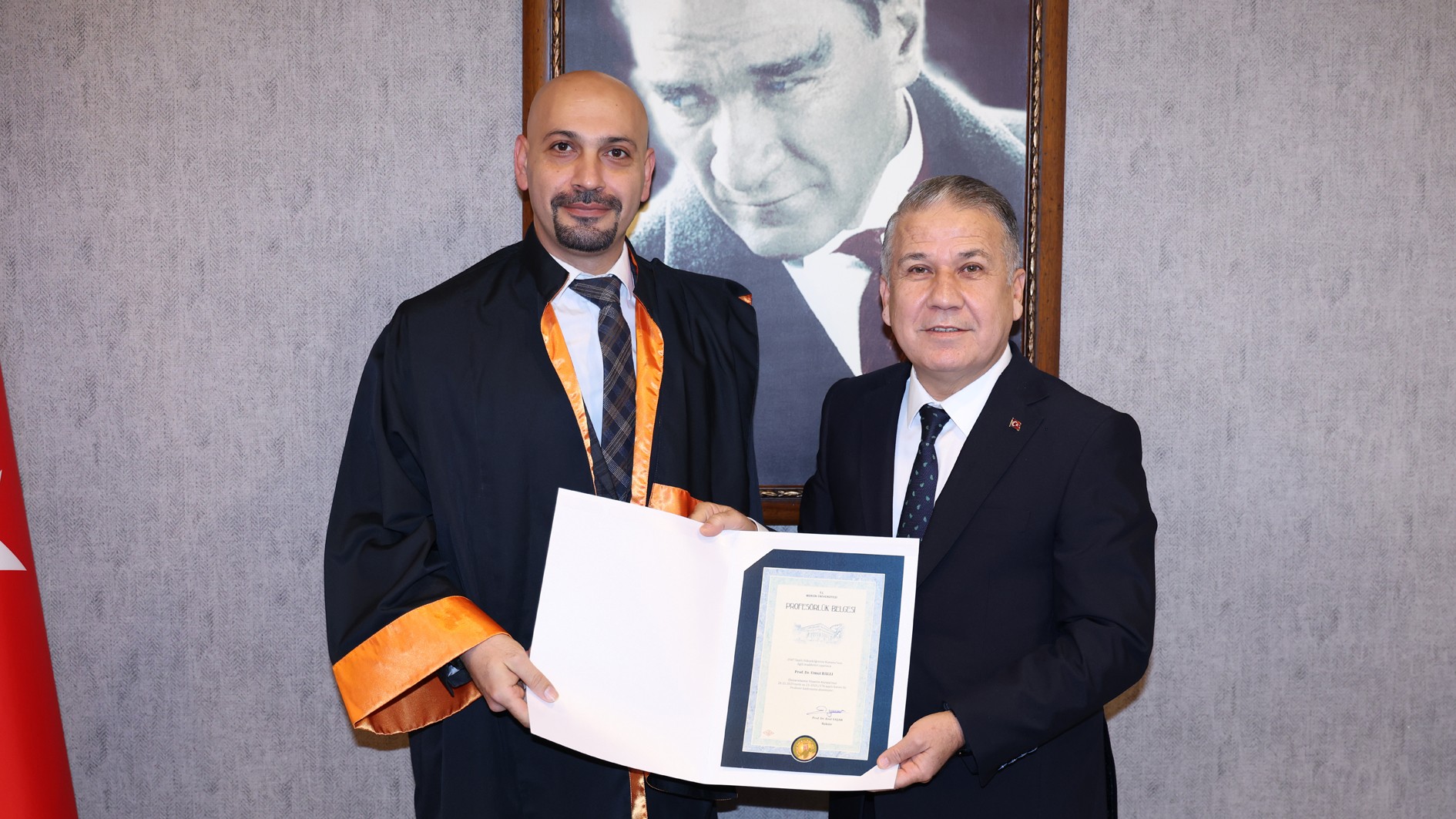 Akademik kadromuzun güçlenmesinden duyduğu memnuniyeti dile getiren Rektörümüz Prof. Dr. Erol Yaşar, öğretim üyelerimize yeni ünvanlarının hayırlı olmasını dileyerek Prof. Dr. Ceren Yegen, Prof. Dr. Kadir Abacı, Prof. Dr. Recep Ünal, Prof. Dr. Mustafa Serkan Yalçın ve Prof. Dr. Umut Ballı’ya profesörlük belgelerini takdim etti.