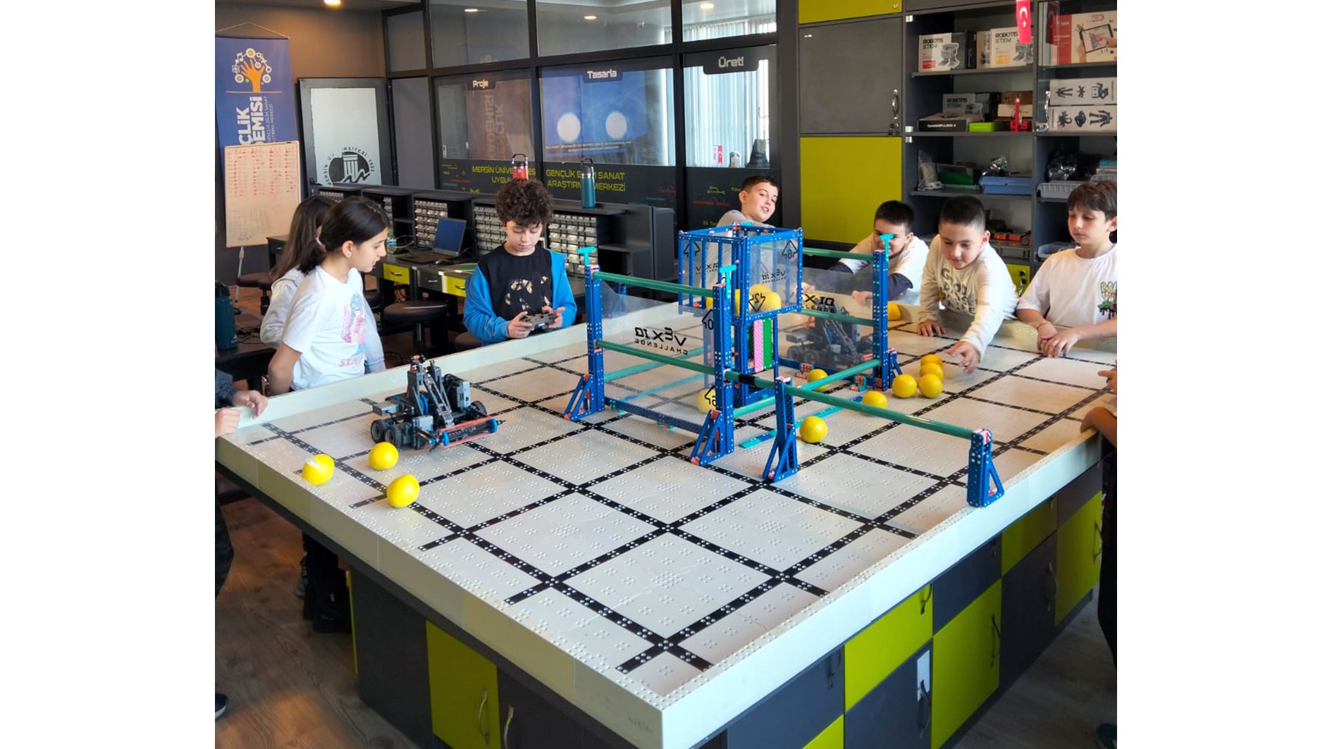Eğitim Fakültesi Bilgisayar ve Öğretim Teknolojileri Eğitimi Bölümü öğretim üyemiz Dr. Öğr. Üyesi Ali Gök ve aynı bölüm Yüksek Lisans Öğrencisi İlhan Darıcı tarafından ilkokul öğrencileri için özel olarak hazırlanan Robotik Yarışma Takımı Hazırlık Eğitimi’ne katılan öğrenciler, yaklaşık üç ay boyunca Üniversitemiz Gençlik Akademisi Robotik Atölyesi’nde robotik ve kodlama becerilerinin yanı sıra problem çözme, takım çalışması ve disiplinler arası düşünme becerilerini geliştirme fırsatı buldular.